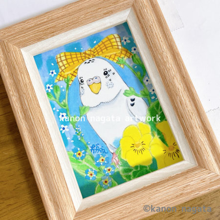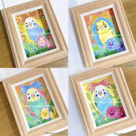 セキセイインコさんのミニ原画やグッズ・ポストカードを販売します。